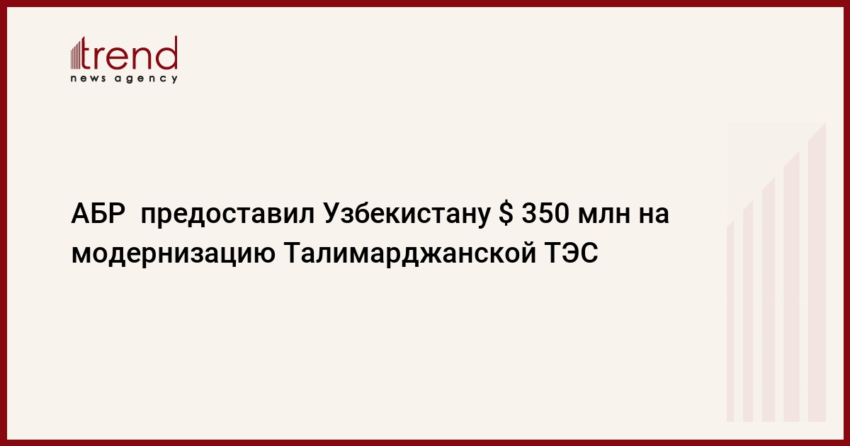 Президент Азиатского банка развития (АБР) Харухико Курода и первый вице-премьер, министр финансов Узбекистана Рустам Азимов подписали в субботу заемное соглашение на 350 миллионов долларов для реализации проекта по модернизации Талимарджанской ТЭС (Кашкадарьинская обл.) общей стоимостью 1,28 миллиарда долларов.