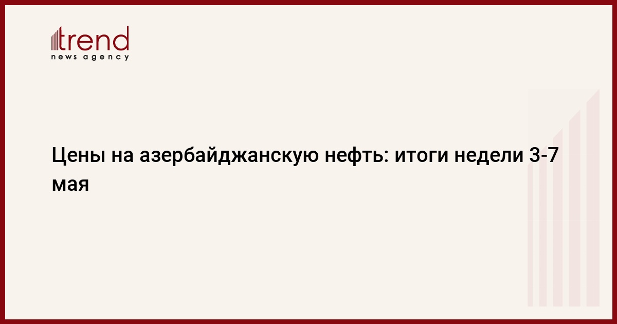 Hа неделе, 3-7 мая, средняя цена на сорт нефти URALS (EX-NOVO), которую Азербайджан продает в порту Новороссийск, составила 77,69 долларов за баррель, что на 4,3 доллара за баррель ниже средней цены на предыдущей неделе.