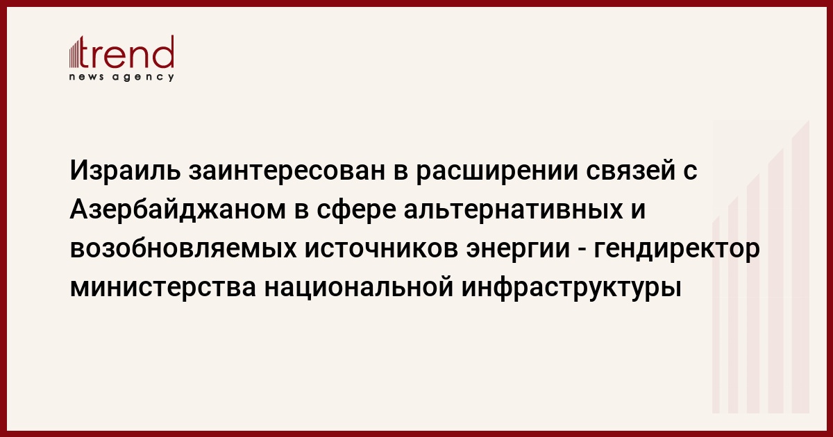 Израиль заинтересован в увеличении количества поставщиков газа на свой рынок, сказал в интервью Trend по электронной почте генеральный директор министерства национальной инфраструктуры Израиля Шаул Земах (Shaul Zemach).
