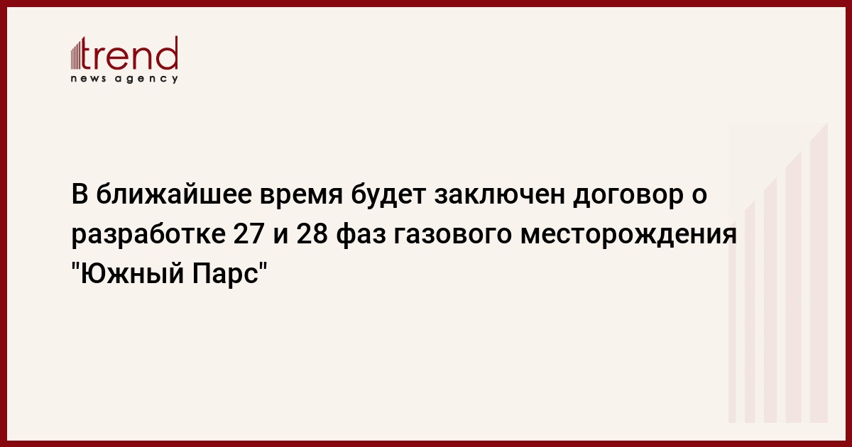 Государственная нефтегазовая компания Ирана и компания "Петро Парс" подпишут договор о разработке 27-й и 28-й фаз газового месторождения "Южный Парс", сказал генеральный директор компании "Петро Парс" Гуламрза Манучехри, сообщает информагентство Fars.