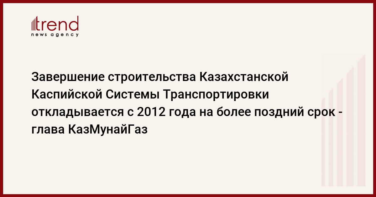 Сроки реализации строительства Казахстанской Каспийской Системы Транспортировки (ККСТ) переносятся с 2012 года на более поздний срок, об этом сказал председатель правления АО НК "КазМунайГаз" Кайргельды Кабылдин.