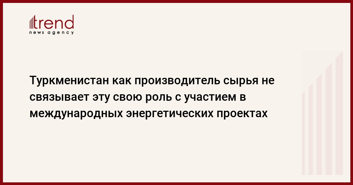 Туркменистан как производитель сырья в состоянии предоставлять необходимые объемы потребителю и страна не связывает эту свою роль с участием в каких-либо международных энергетических проектах или схемах продаж за пределами своих границ, говорится в сообщении, распространенном министерством иностранных дел страны.