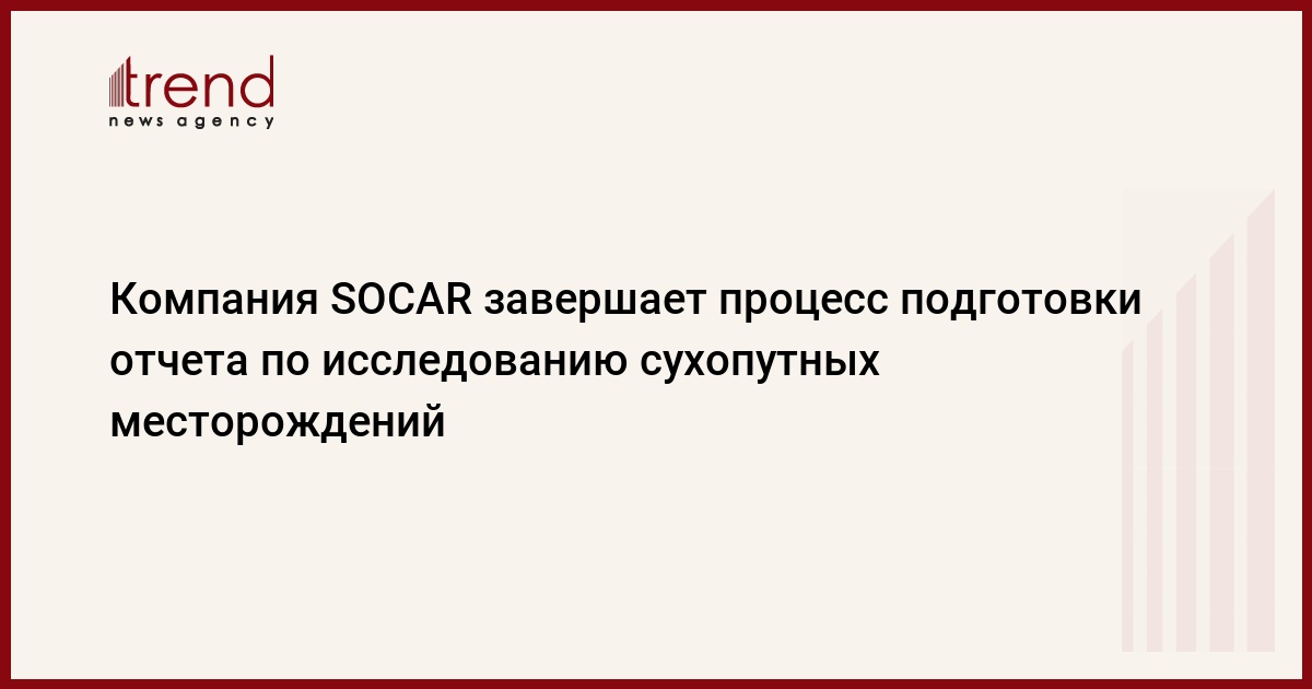 На днях компания SOCAR (Госнефтекомпания Азербайджана) завершит работы по подготовке отчета по итогам проведенных двухмерных геофизических исследований (2D) на сухопутных участках Зардаб, Шихбагы и восточный Шихбагы, сказал источник в SOCAR. Отчет подготавливается на основе обработки и интерпретации данных, полученных в результате 2D- исследований.
