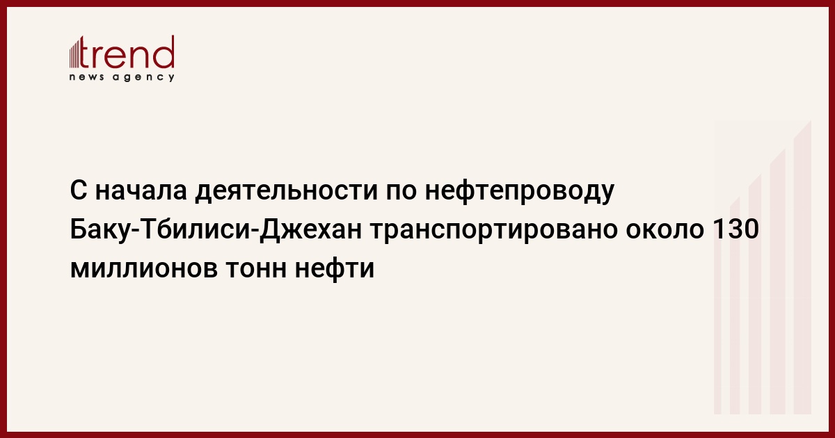 Общая протяженность нефтепровода BTC - 1768 километров, из которых 443 км пролегают по территории Азербайджана, 249 км - Грузии, 1076 км - Турции. Строительство трубопровода началось в апреле 2003 года, а его заполнение нефтью - 18 мая 2005 года.