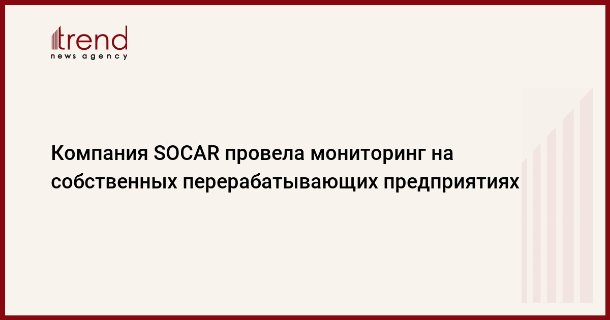 Управление экологии компании SOCAR (Госнефтекомпания Азербайджана) провело экологический мониторинг на нефте- и газоперабатывающих предприятиях Азербайджана, говорится в сообщении, распространенном SOCAR во вторник.