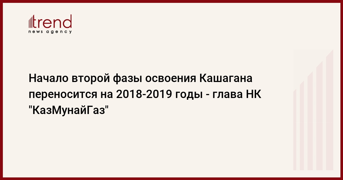 Начало второй фазы освоения месторождения Кашаган переносится на 2018-2019 годы, сообщил сегодня на расширенном заседании Совета директоров Фонда национального благосостояния "Самрук- Казына" президент казахстанской национальной компании "КазМунайГаз" Кайргельды Кабылдин.