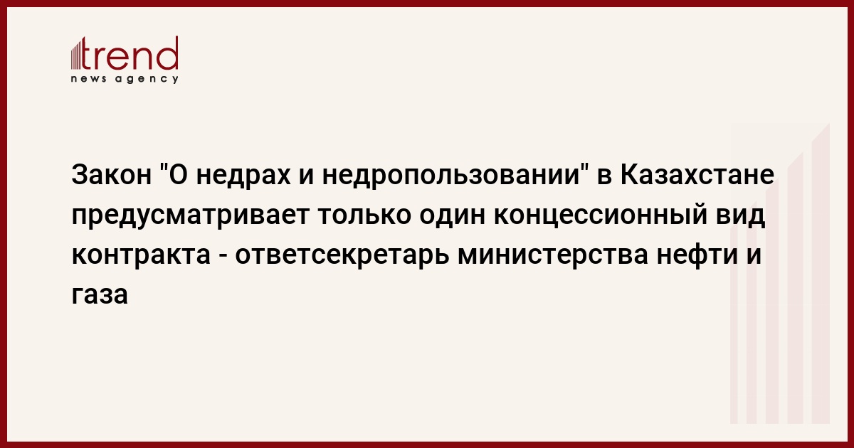 Принятая в Казахстане новая версия закона "О недрах и недропользовании" предусматривает только один концессионный вид контракта на проведение разведки и добычи полезных ископаемых, сказал ответственный секретарь министерства нефти и газа Канатбек Сафинов.