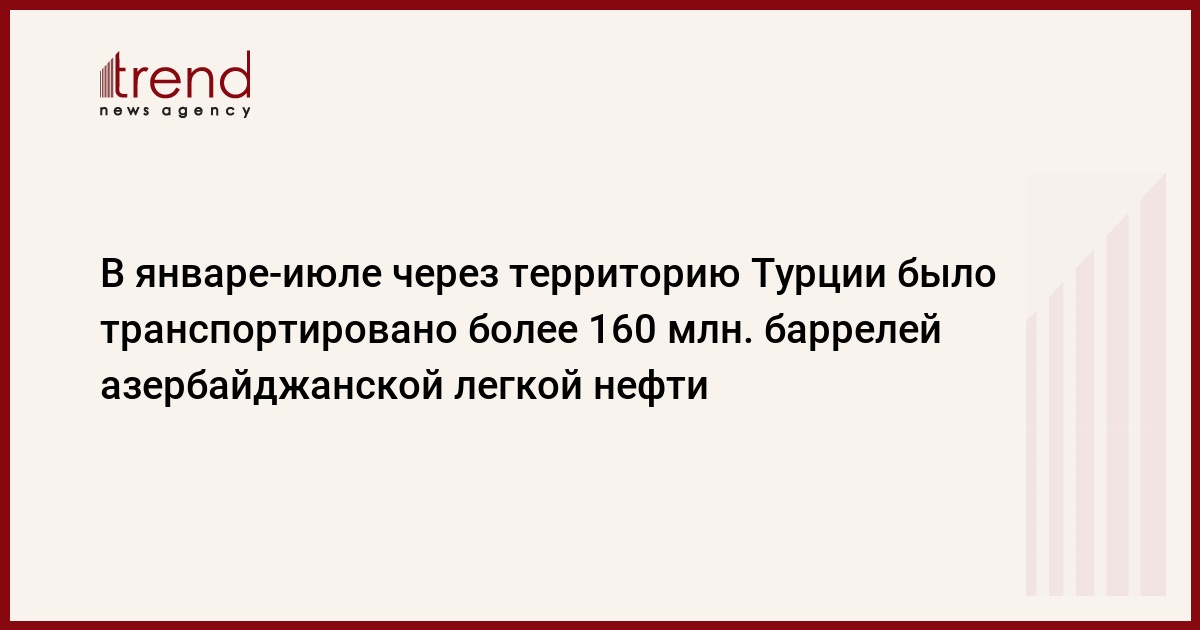 В январе-июле этого года по трубопроводу Баку-Тбилиси-Джейхан (БТД) по территории Турции было транспортировано около163,23 миллиона баррелей нефти против более 165,1 миллиона баррелей в январе-июле 2009 года, говорится в сообщении, размещенном на официальном интернет-сайте государственной трубопроводной компании Турции Botas.