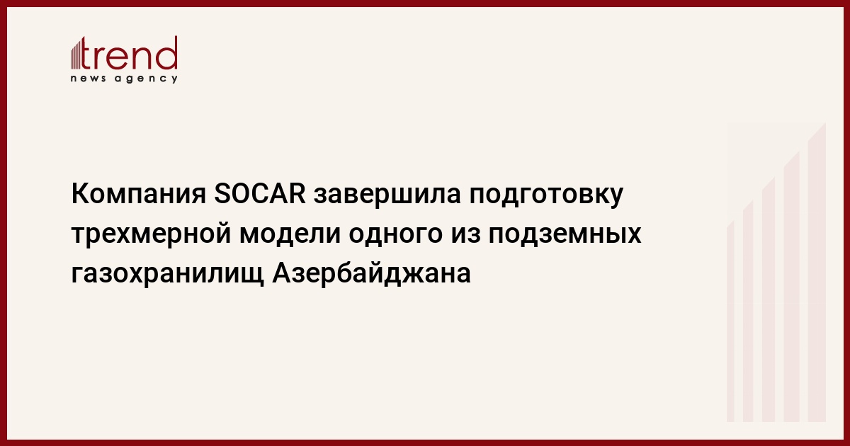 Компания SOCAR (Госнефтекомпания Азербайджана) завершила подготовку трехмерной модели Калмазского подземного газохранилища, сказал в субботу источник в SOCAR.
