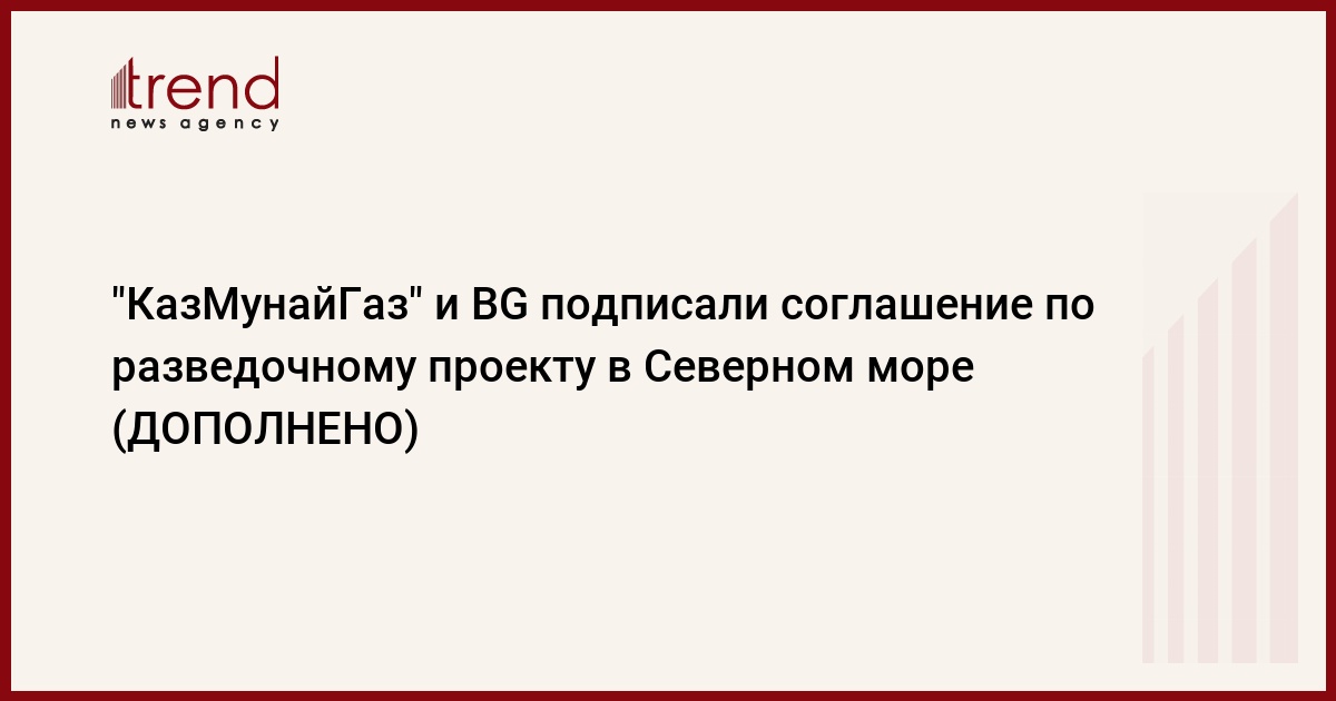 Компании "КазМунайГаз" и BG Group подписали соглашение по совместной разведке перспективного блока "White Bear" в британском секторе Северного моря.