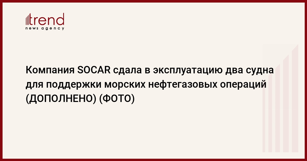 Компания SOCAR (Госнефтекомпания Азербайджана) сдала в эксплуатацию реконструированное крановое судно "Гурбан Аббасов и судно Caspian Power, которые будут функционировать в рамках альянса BUE Caspian. Церемония сдачи судов в эксплуатацию, в которой приняли участие президент SOCAR Ровнаг Абдуллаев и другие высокопоставленные представители компании, была приурочена ко Дню нефтяника, отмечаемому в Азербайджане 20 сентября.