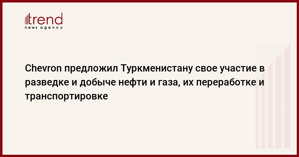Chevron предложил Туркменистану свое участие в разведке и добыче нефти и газа, их переработке и транспортировке