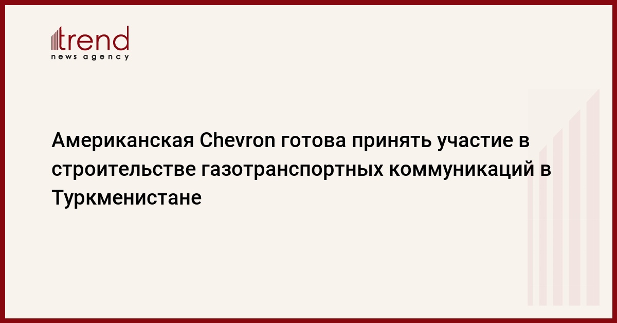 Данное намерение было озвучено вице-президентом американской Chevron Джеем Прайором на встрече с президентом Туркменистана Гурбангулы Бердымухамедовым.