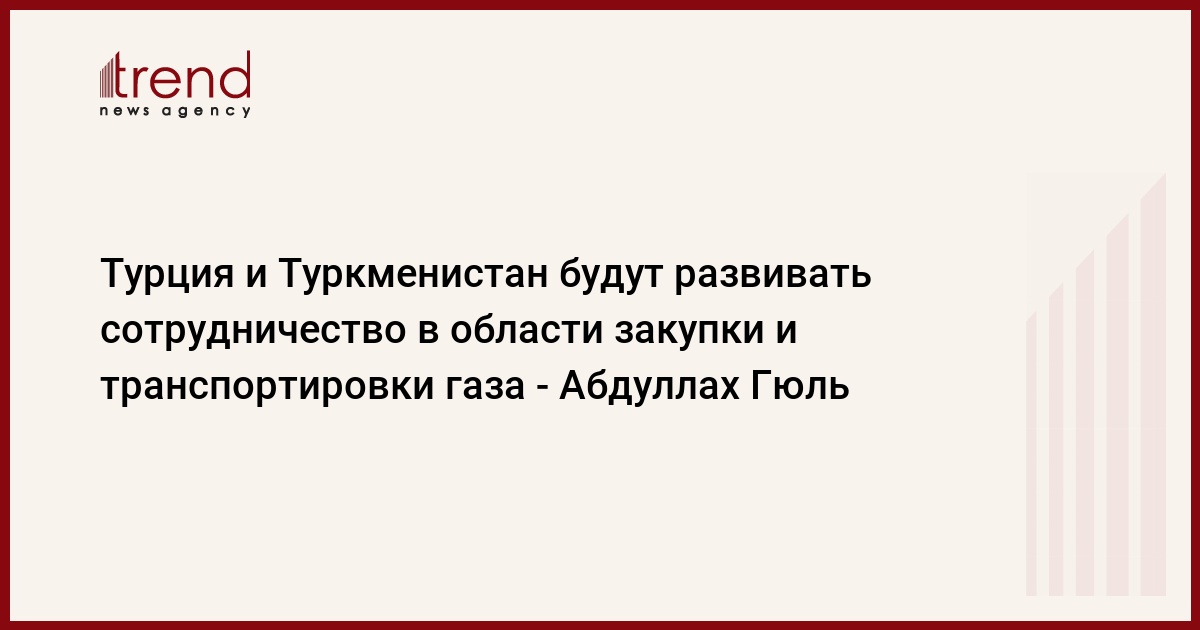 Турция и Туркменистан будут развивать сотрудничество в области закупки и транспортировки природного газа. Об этом, как сообщает Анатолийское агентство, сегодня заявил президент Турции Абдуллах Гюль на переговорах в Туркмении с ее лидером Гурбангулы Бердымухамедовым, пишет ИТАР-ТАСС.