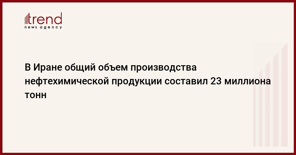 В Иране с начала года до середины ноября (в Иране год начинается 21 марта) общий объем производства нефтехимической продукции составил 23 миллиона тонн, передает в пятницу агентство Shana.