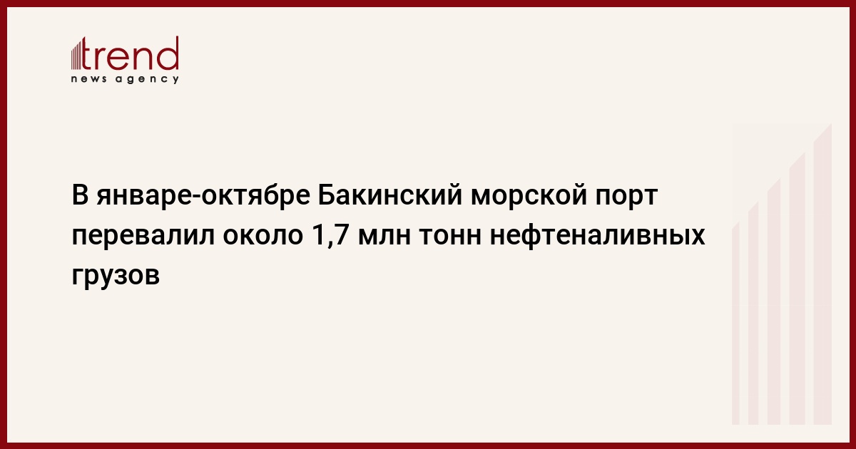 В январе-октябре Бакинский международный морской торговый порт перевалил 1,68 миллиона тонн нефти и нефтепродуктов против 2,1 миллиона тонн за аналогичный период прошлого года, сказал в четверг источник в Бакинском порту.