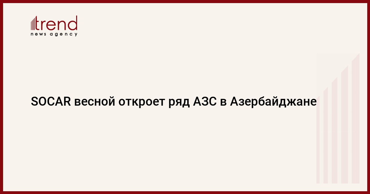 Всего SOCAR намерена открыть по Азербайджану 26-30 автозаправочных станций. Также большое внимание уделяется тому, чтобы станции находились на выездах и въездах в республику. Инвестиции в строительство АЗС в Азербайджане составляют 20 миллионов манатов.
