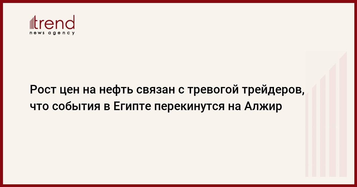 Рост цен не нефть связан с тревогой трейдеров, что события в Египте перекинутся на Алжир, сказал в интервью Trend вице-президент по торговле The Rompetrol Group (дочка "КазМунайГаз") Мурат Жумадиллаев.