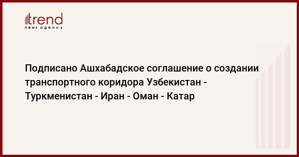 В Ашхабаде 25 апреля в первой половине дня состоялась церемония подписания межгосударственного соглашения о формировании нового международного транспортного и транзитного коридора Узбекистан - Туркменистан - Иран - Оман - Катар.
