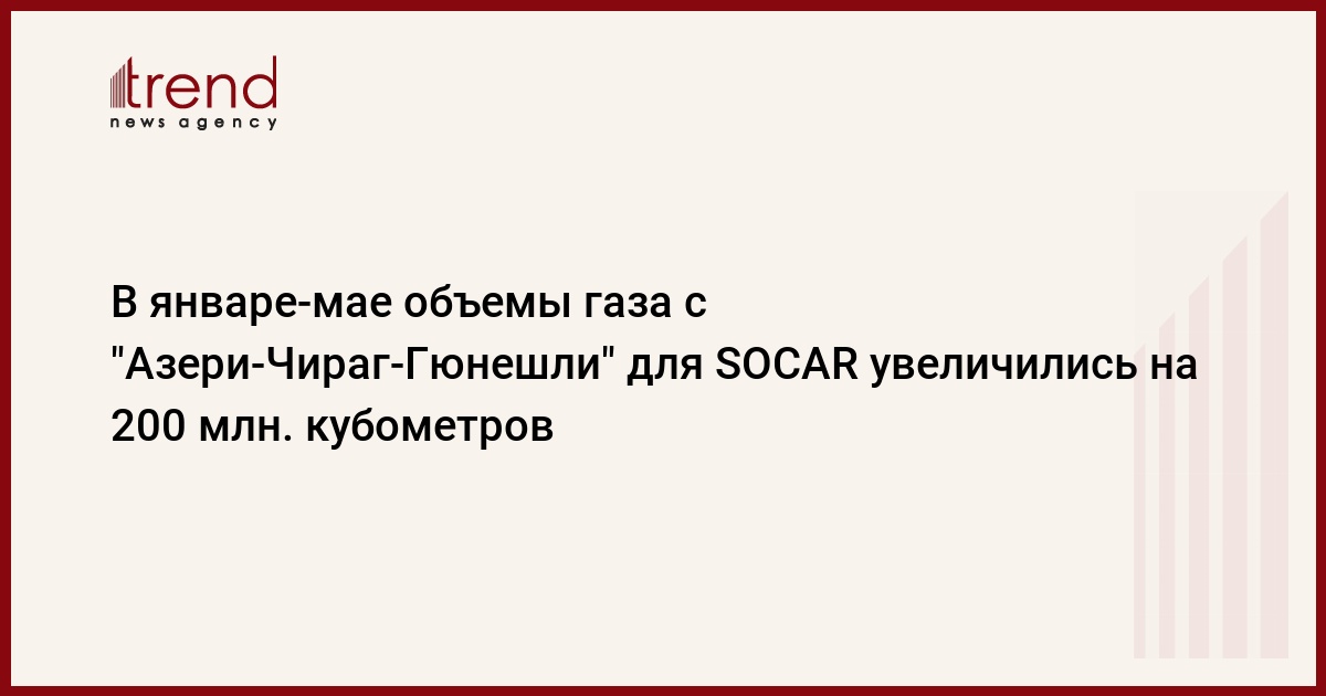 В январе-мае SOCAR получила более трех миллиардов кубических метров газа против около 3,24 миллиарда кубических метров в январе-мае прошлого года. Нефтегазодобывающие управления SOCAR в этот период добыли более 2,8 миллиарда кубических метров газа. Совместные предприятия и операционные компании, добывающие газ на суше, передали SOCAR 89,8 миллиона кубических метров газа.