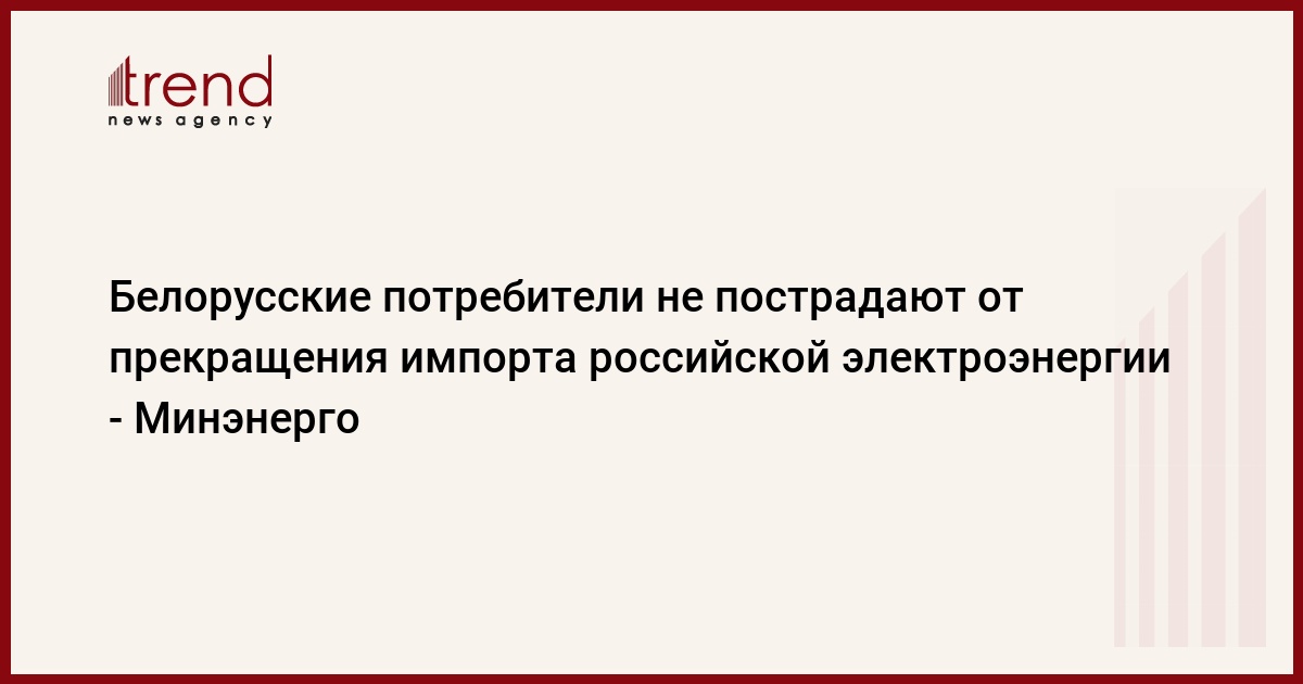 Белорусские потребители не пострадают от прекращения импорта российской электроэнергии, которое произошло сегодня в 00.00 часов, сообщила корреспонденту БЕЛТА помощник министра энергетики Беларуси Людмила Зенькович.