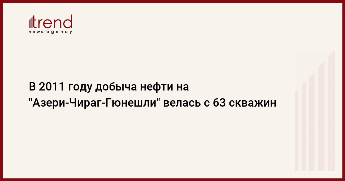В 2011 году на блоке азербайджанских морских месторождений "Азери-Чираг-Гюнешли" (АЧГ) в эксплуатации находилось 63 добывающих и 32 инжекторных скважины, говорится в четверг в официальном отчете компании BP по итогам 2011 года. Всего за данный период на блоке было добыто 35,4 миллиона тонн нефти (261,9 миллиона баррелей).