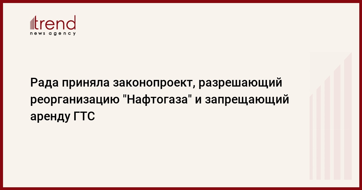 Парламент Украины на заседании во вторник принял в первом чтении оппозиционный законопроект о реформировании нефтегазового комплекса, который разрешает реорганизацию компании "Нафтогаз", но запрещает аренду и приватизацию газотранспортной системы (ГТС) страны, передает РИА Новости.