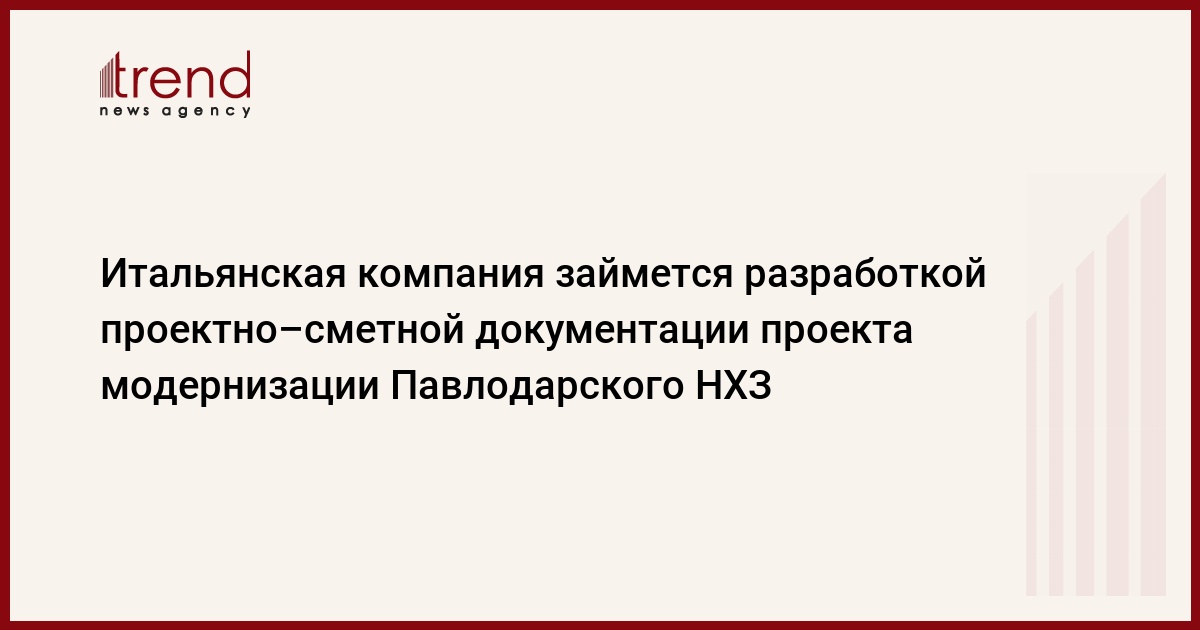 Началась разработка проектно- сметной документации проекта "Модернизации Павлодарского нефтехимического завода", об этом Trend по телефону сообщил генеральный директор АО "Павлодарский нефтехимический завод" Шухрат Данбай.