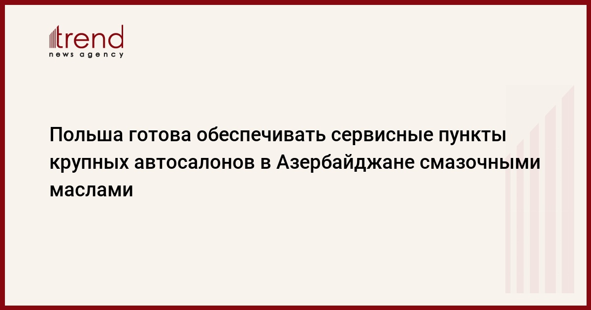Польская нефтяная компания Lotos Oil договорилась о реализации своих смазочных масел на сервисных пунктах компании KIA-Azerbaijan, сообщил в четверг коммерческий директор по зарубежным рынкам компании Цезар Когучик азербайджанским журналистам в Кракове.