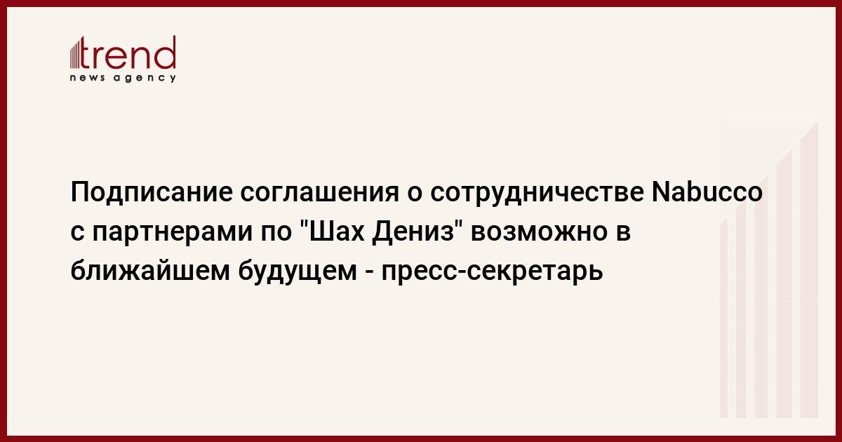 Соглашение, в частности, будет включать в себя технические аспекты сотрудничества, а также вопросы потенциального участия партнеров по разработке "Шах Дениз" в качестве акционеров в проекте Nabucco West.