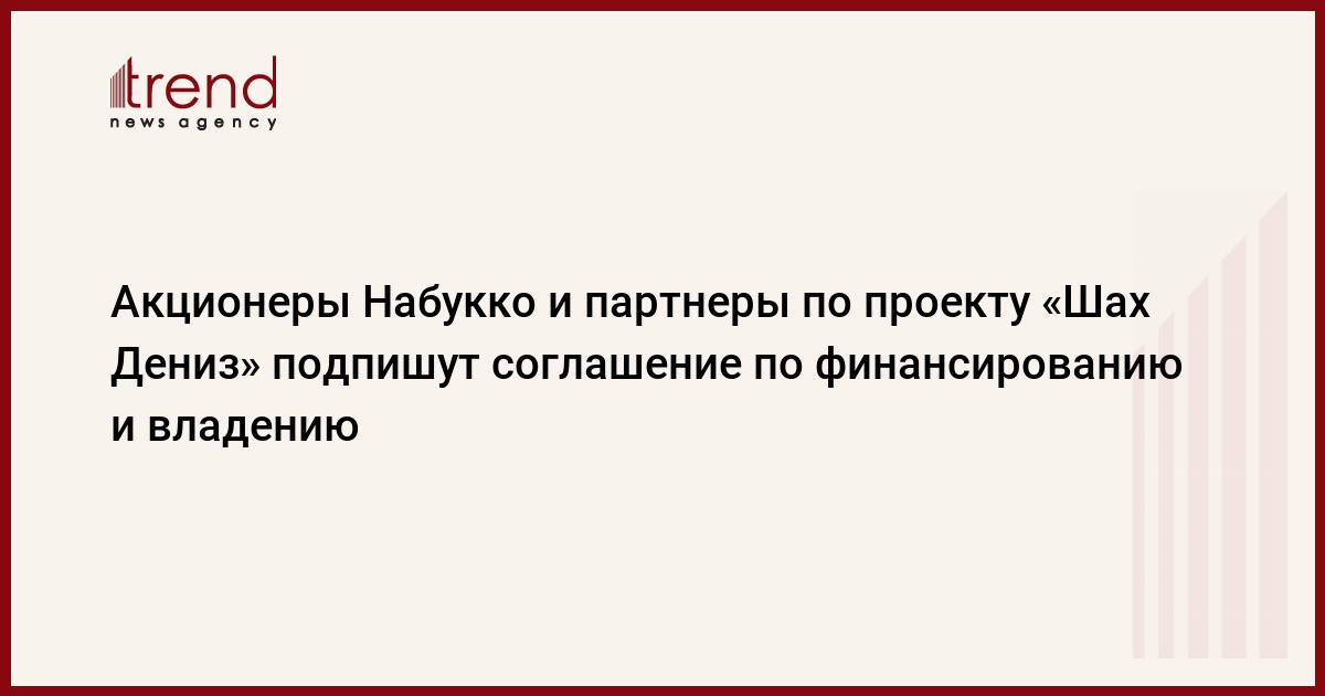 Акционеры проекта газопровода Набукко и партнеры по разработке азербайджанского месторождения "Шах Дениз" достигли в четверг в Софии договоренности по соглашению о финансировании и владении, говорится в сообщении Nabucco Gas Pipeline International Gmbh.
