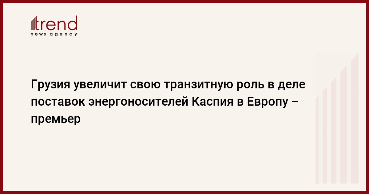 Грузия приложит все усилия для увеличения своей транзитной роли по поставкам энергоносителей Каспия и Азии в Европу, заявил во вторник в ходе выступления в ПАСЕ премьер-министр Грузии Бидзина Иванишвили.