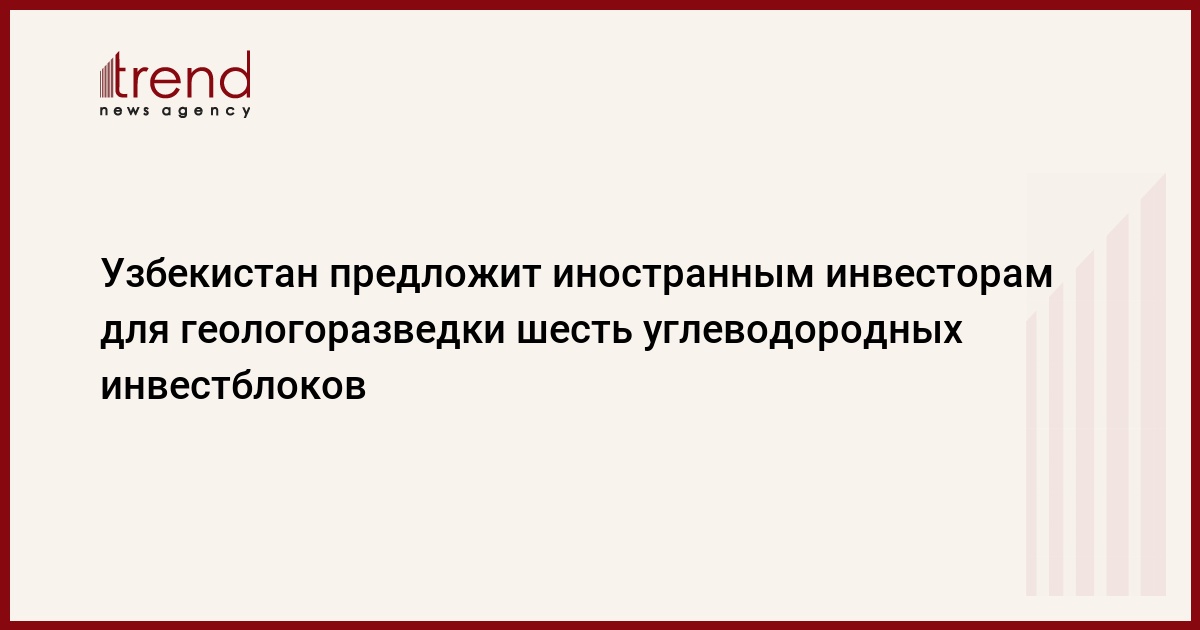 В перечень включены три блока в Бухаро-Хивинском регионе, два блока в Средне-Сырдарьинском регионе и один блок - в Ферганском регионе с общими прогнозными ресурсами углеводородов в объеме около 500 миллиардов кубометров природного газа и 70 миллионов тонн жидких углеводородов.