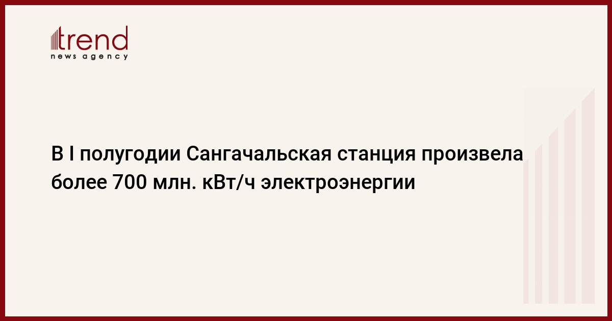 В январе-июне Сангачальская электростанция выработала более 706,5 миллиона киловатт-часов электроэнергии, говорится в сообщении, распространенном АО "Азерэнержи" (производство и распределение электроэнергии в Азербайджане) в среду.