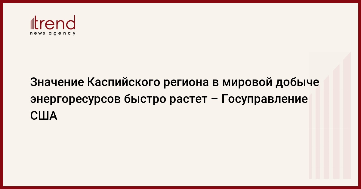 Каспийский регион является одним из древнейших в мире, где добывается нефть, и его важность в качестве источника глобальной добычи энергоресурсов быстро растет, говорится в докладе Государственного управления энергетической информации США (EIA), размещенном на его официальном сайте.