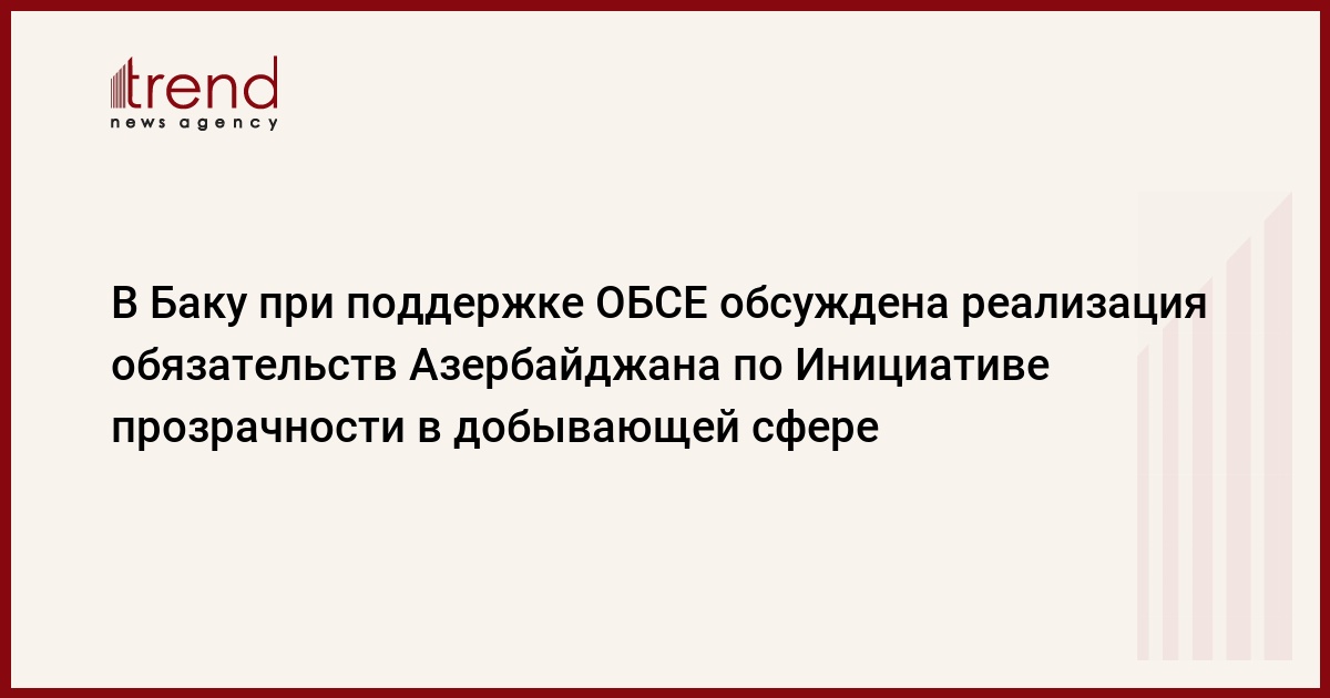 Во вторник при поддержке ОБСЕ в Баку прошло мероприятие по реализации обязательств Азербайджана по Инициативе прозрачности в добывающей сфере, говорится в сообщении, размещенном на официальной сайте ОБСЕ.