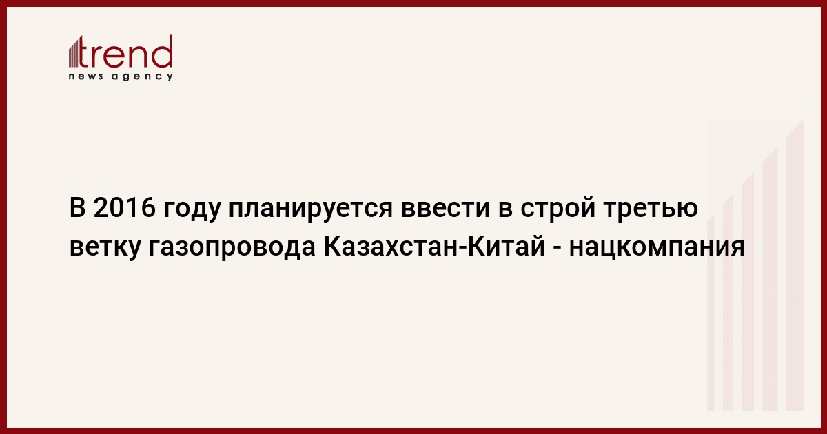 Третью ветку газопровода Казахстан-Китай планируется ввести в строй в 2016 году. Об этом на VIII Евразийском форуме "KAZENERGY" во вторник сообщил председатель правления АО "КазМунайГаз" Сауат Мынбаев.