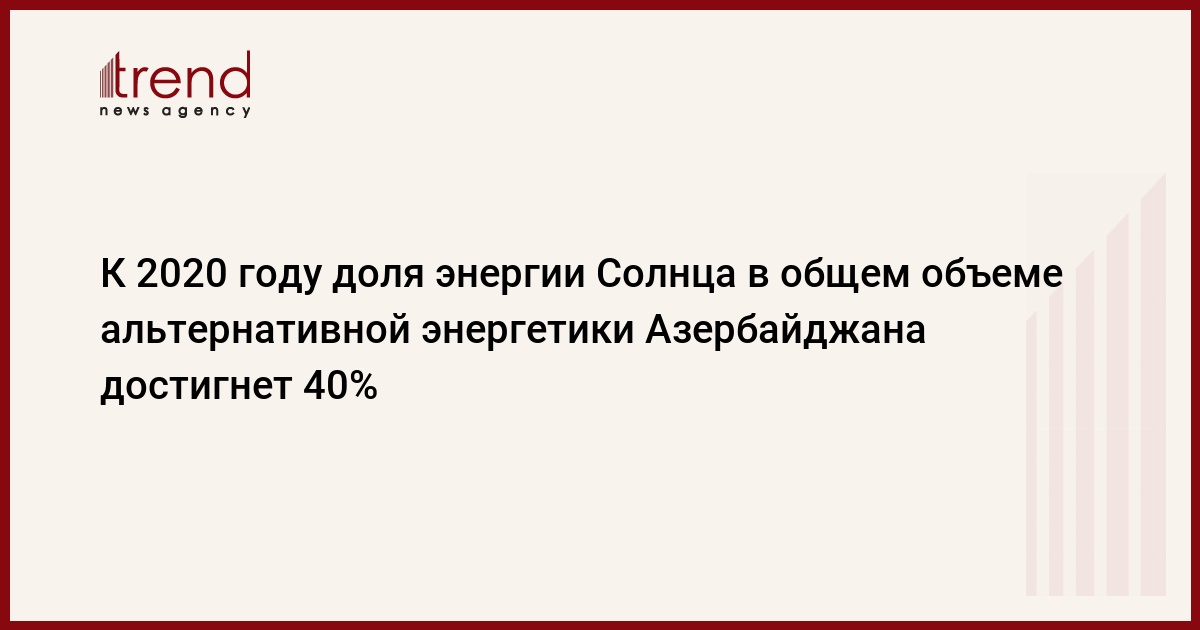 Как отметил представитель Госагентства, к 2020 году удельный вес энергии Солнца в общем объеме альтернативной энергетики в Азербайджане планируется довести до 40 процентов, а энергии ветра - 28 процентов.
