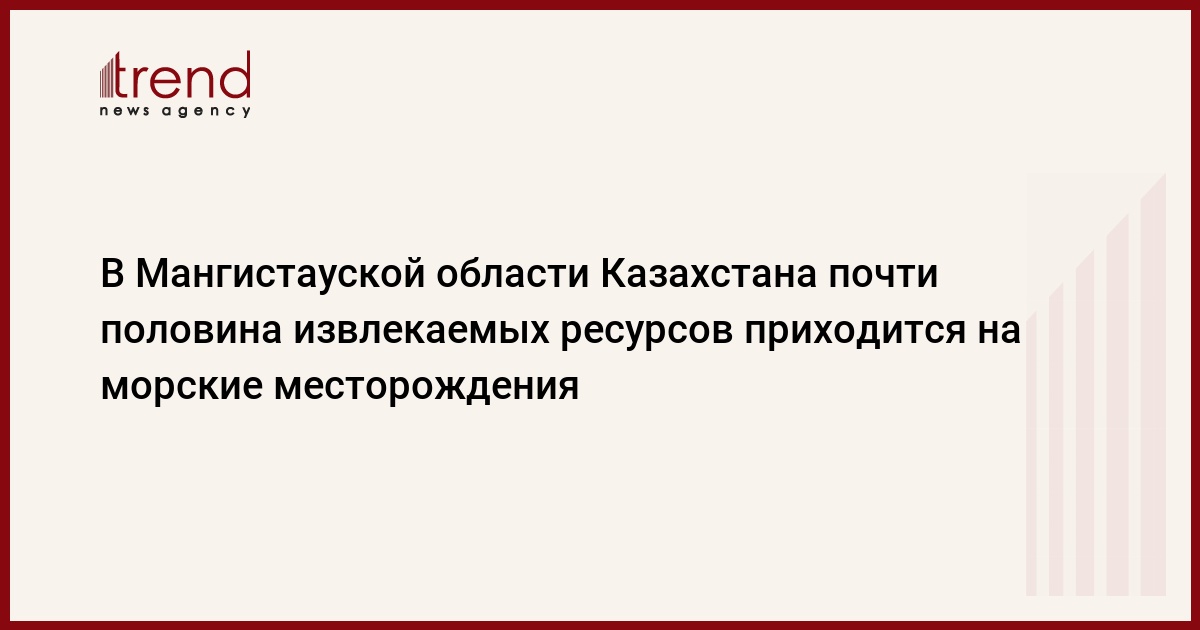 В Мангистауской области Казахстана порядка восьми миллиардов тонн извлекаемых ресурсов приходится на морские месторождения, сообщил в пятницу в Астане аким (губернатор) области Алик Айдарбаев.