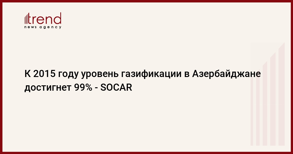 Уровень газификации в Азербайджане к 2015 году достигнет 99 процентов, сказал в субботу в рамках мероприятия по подведению итогов года глава компании SOCAR (Госнефтекомпания Азербайджана) Ровнаг Абдуллаев.