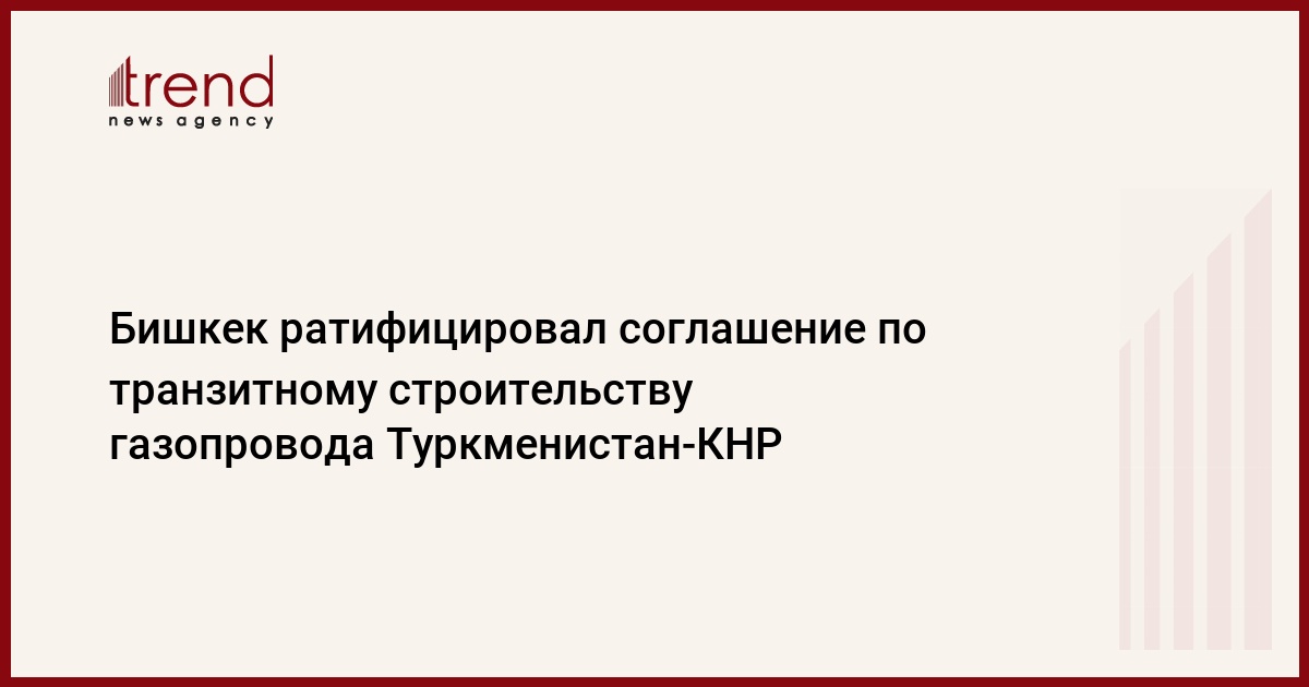 Президент Кыргызской Республики (КР) Алмазбек Атамбаев подписал закон "О ратификации Соглашения между правительством КР и правительством Китайской Народной Республики(КНР) о сотрудничестве в строительстве и эксплуатации газопровода "Кыргызстан - Китай", сказано на официальном сайте президента КР.