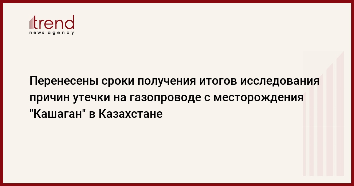 Сроки завершения исследования причин утечки на газопроводе с месторождения "Кашаган" в Казахстане переносятся на апрель, сообщили Trend в международном консорциуме "North Caspian Operating Company" (NCOC), который занимается разработкой месторождения.