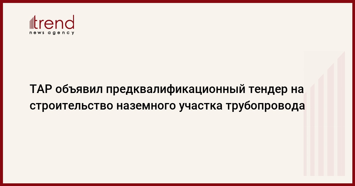 Консорциум по разработке проекта строительства Трансадриатического трубопровода (ТАР) объявил предквалификационный тендер для строительства наземного участка трубопровода. Об этом говорится в сообщении ТАР, размещенном на его сайте.