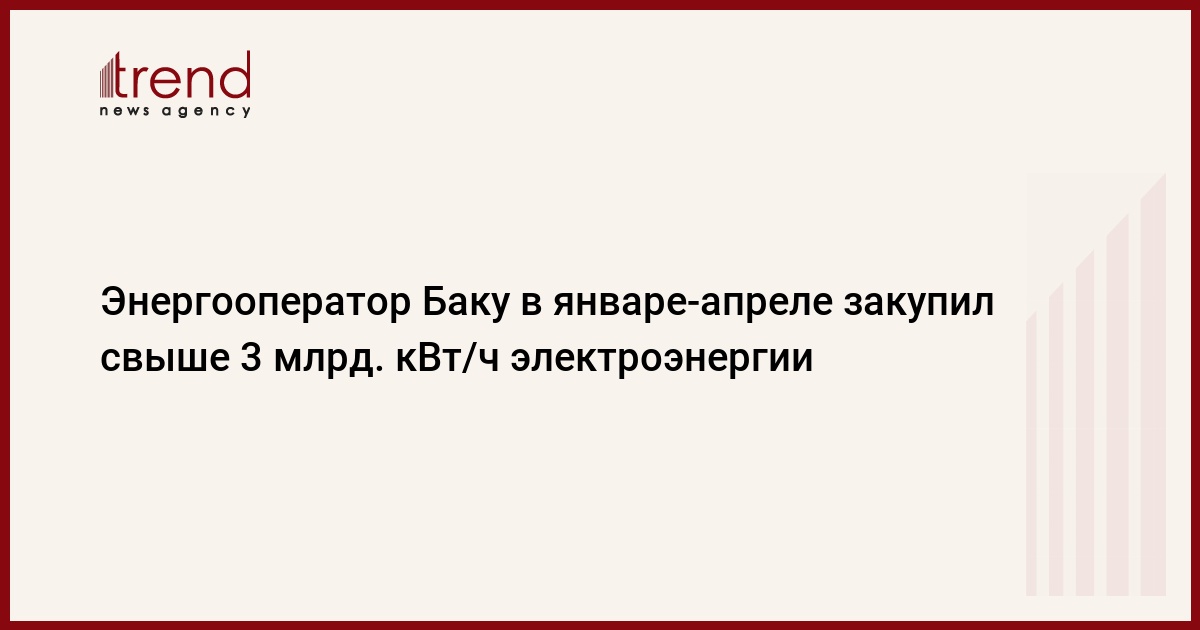 В январе-апреле 2014 года АО "Бакиэлектрикшебеке" (продажа и распределение электроэнергии в Баку) приобрело у АО "Азерэнержи" (производство и распределение электроэнергии в регионах Азербайджана) 3,2 миллиарда киловатт/часов электроэнергии. Об этом сообщили Trend во вторник в АО "Бакиэлектрикшебеке".