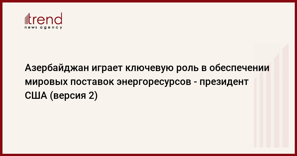 "Роль Азербайджана в качестве поставщика энергоресурсов будет способствовать развитию диверсифицированной экономики, позволит укрепить верховенство закона, а также повысить уровень жизни народа страны. США ценит сотрудничество Азербайджана в указанных сферах", - отмечается в послании.