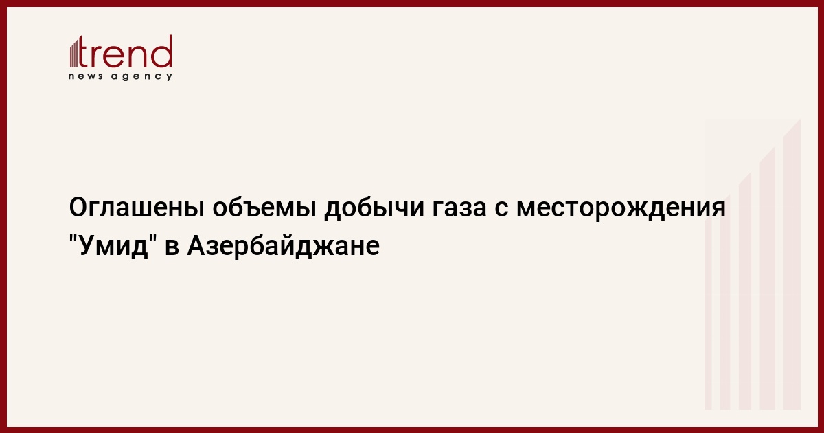 С газоконденсатного месторождения "Умид", которое было открыто компанией SOCAR (Госнефтекомпания Азербайджана), до настоящего времени были добыты 394 миллиона кубометров газа и 65 тысяч тонн конденсата.