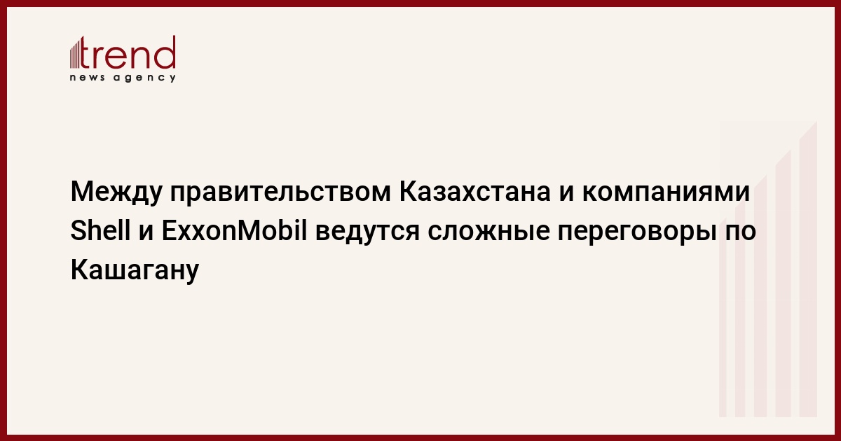 Между правительством Казахстана и компаниями Shell и ExxonMobil ведутся сложные переговоры по Кашагану, сообщил Trend информированный источник из нефтегазовых кругов.
