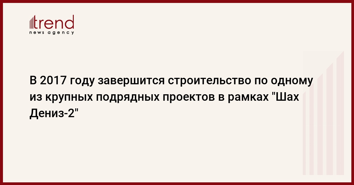 В конце прошлого года оператор проекта разработки "Шах Дениз" - компания BP - в рамках проекта "Шах Дениз-2" объявила о подписании контракта с консорциумом ATA на общую сумму 974 миллиона долларов. В рамках контракта в течение пяти лет предусматривается строительство верхних модулей добывающей платформы и технологической платформы, включая жилой блок. В задачу подрядчика входит выполнение всех процедур до введения этих платформ в эксплуатацию.