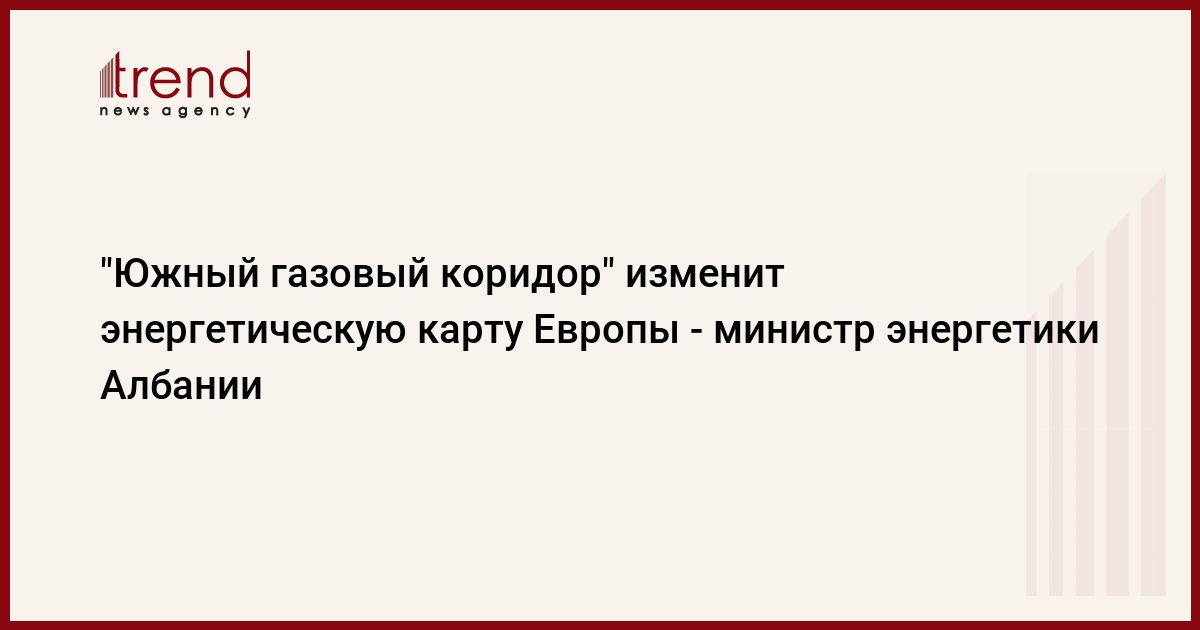 БАКУ /Trend/ - "Южный газовый коридор" является важным проектом, который изменит энергетическую карту Европы и региона, сказал министр энергетики и промышленности Албании Дамиан Гикнури в субботу в Баку на торжественной церемонии, посвященной 20-летию "Контракта века" и закладке "Южного газового коридора".