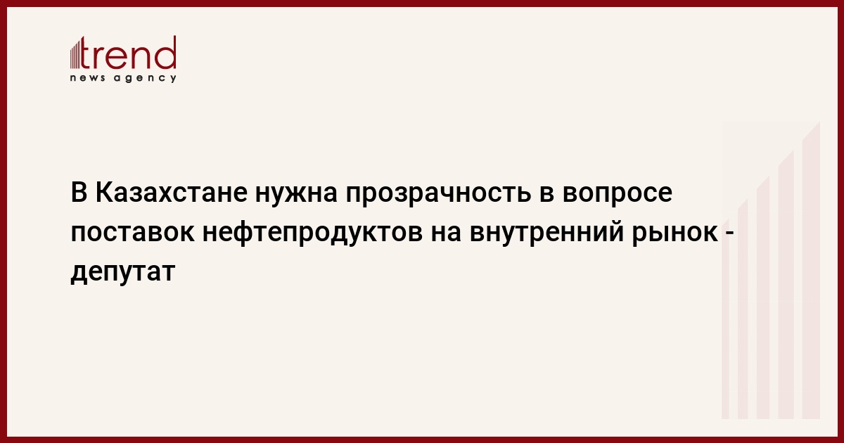 АСТАНА /Trend/ - В Казахстане нужна прозрачность в вопросе поставок нефтепродуктов на внутренний рынок, считает заместитель председателя Мажилиса (нижней палаты Парламента), руководитель Фракции партии "Нур Отан" Дарига Назарбаева.